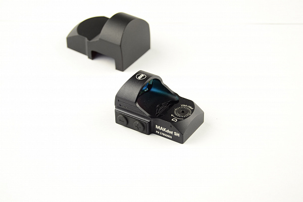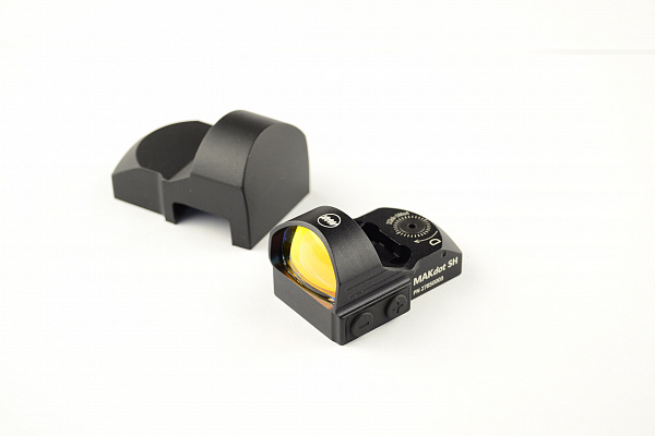 Представляем новинку на рынке оптических прицелов! Коллиматорный прицел открытого типа компании MAK. Модель начального уровня MAKdot SH с красной точкой размером 3,5 МОА. 10 цифровых уровней яркости с автоматическим отключением и памятью. Цена клика - 1 МОА. Питание от батареи CR2032. Водонепроницаемый. Поставляется с защитной резиновой крышкой. Крепление на шину Docter, что позволяет установить прицел на ЛЮБОЕ оружие, в том числе пистолеты.