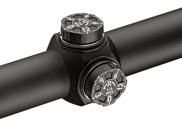 - Регулировка одним пальцем (один щелчок – 1/4 MOA) позволяет быстро и легко устанавливать и сбрасывать настройки в поле.