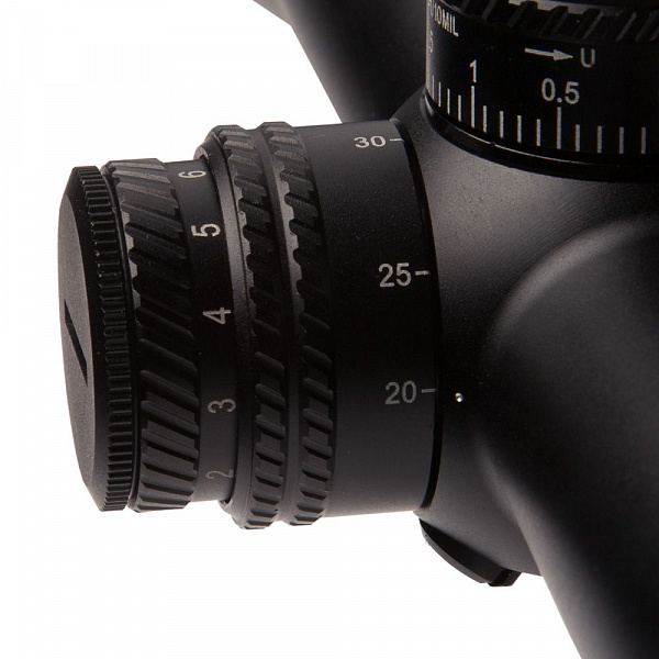 - Первая фокальная плоскость прицельной сетки - прицельная сетка не изменяется при увеличении цели, дальности цели и использовании удерживающих устройств при любом увеличении.