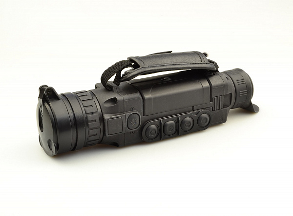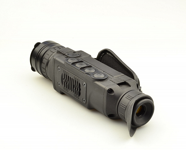 Увеличенный диаметр позволяет вести наблюдении на дистанциях до 1800 метров. Такие расстояния обзора связаны с поисковыми задачами в горах, в охотничьих целях на открытой местности и охраной крупных объектов. Удобство использования тепловизора заключается в отсутствии требования наличия света. Все объекты имеют тепловое излучение. Чтобы увидеть это, в приборе установлен микроболометр. Разрешение в 384х288 элементов с шагом 17 мкм обеспечивает достаточную детализацию для распознавания типа объекта и его движение. Вывод изображения производится на AMOLED-дисплей с разрешением 640x480. Стоит заметить температурную устойчивость дисплея, который рассчитан на морозы до -25°С.